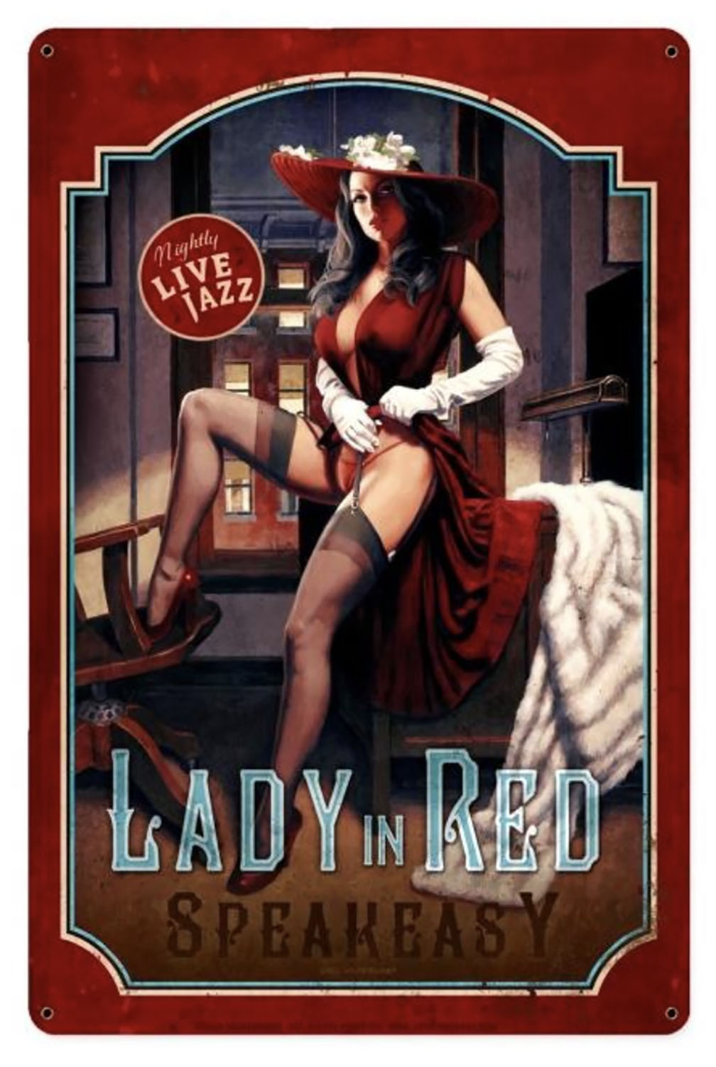 Lady In Red Vintage Sign 24×36 by artist Greg Hildebrandt