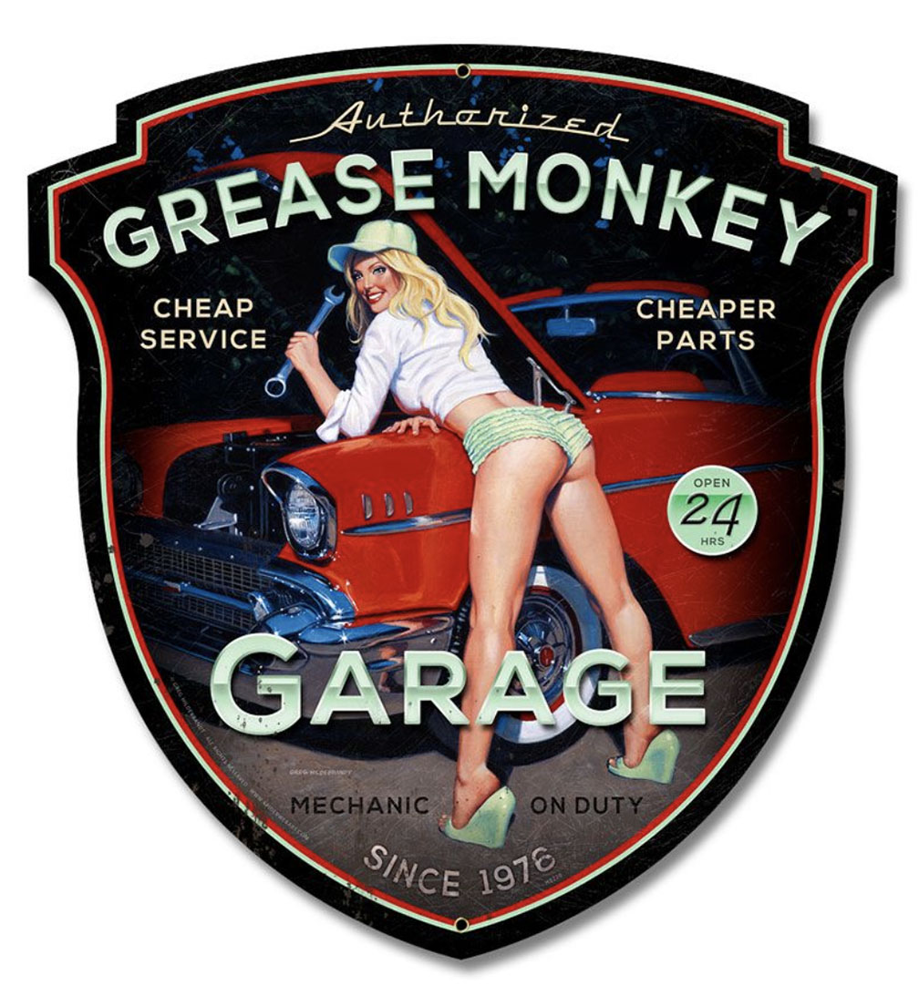 Grease Monkey XL Metal Sign 23×24 by artist Greg Hildebrandt