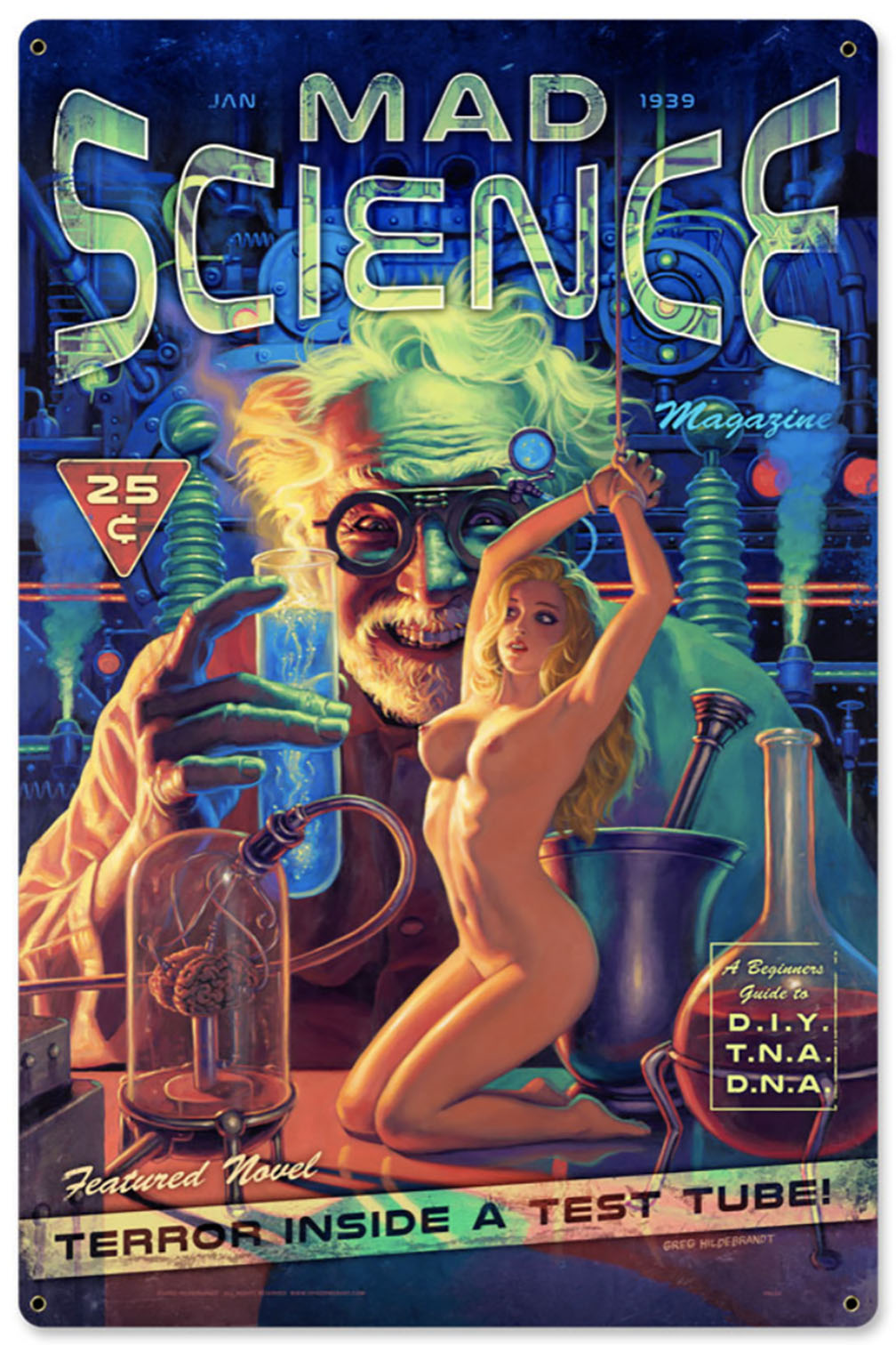HB225 – Mad Science Magazine Satin Metal Sign 12×18 by Artist Greg Hildebrandt